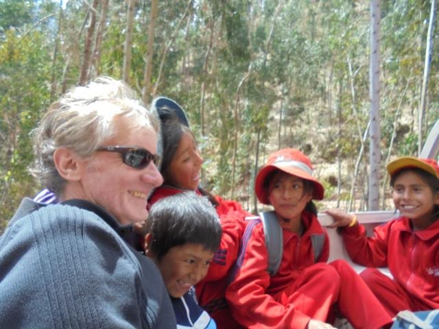Leaving Cochirhuay, we took the kids from Pacopata back to their village in the truck to save them the walk. Even the kids from Cochirhuay wanted a ride to the square. They love riding in the back and I joined them. The sun was shining, the smell of eucalyptus was in the thin air (we are at 12,500 feet here) and all around us the magnificent steep mountains. A few of the kids were shy but most were not. The kids teased me, I teased them, it was great. After the bumpy 15 minute ride they jumped out and waved to us until we couldn’t see them anymore.