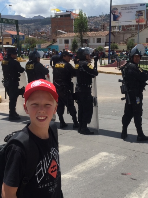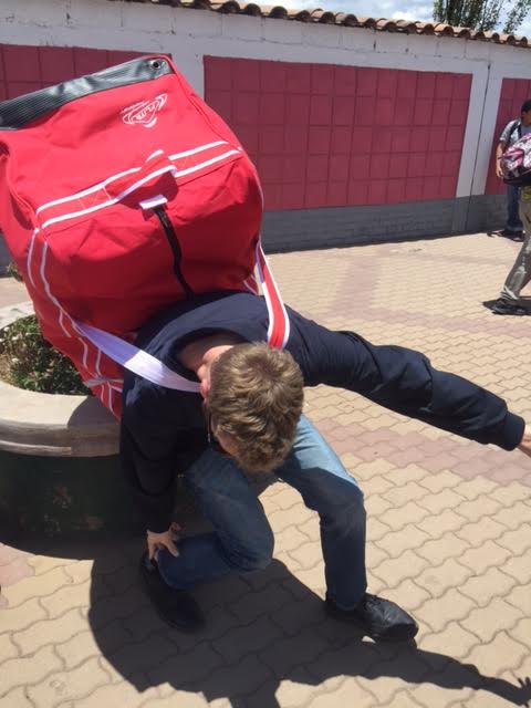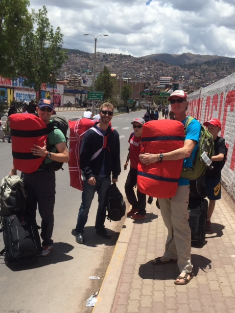 At the airport in Toronto we got news that Cusco had been shut down by a general strike: everything was closed and the roads were to be blocked for the next 2 days. President Ollanta decided to privatize the management of the archaeologic sites in Cusco province which upset everyone in this part of the world. We weren’t sure what to expect but when we arrived, sure enough, the roads were blocked and no vehicles were running. So we gathered up our bags including three, 80 pound hockey bags full of soccer shirts and soccer balls and began walking to Ian’s apartment. The apartment was only a couple of kilometres away, and we only had to cross one police barricade, but the walk with all that luggage at 10,000 feet of altitude and a bright hot sun was absolutely killer. Until I started to think of the porters on the Inca trail who RUN with packs like this in flip flops! As we passed cuscuenos in the street, many asked us where we were going, and if were you lost. They could not provide transport but obviously felt bad and wanted to at least give us directions. It took about an hour to make it to Ian’s place and another hour of water and coca leaves to get over our hike.