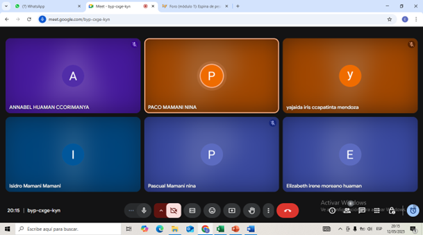 Meeting with teacher Anabel from Ugel Quispicanchis, to assist with logging into the platform and guide them through the activities to be developed.